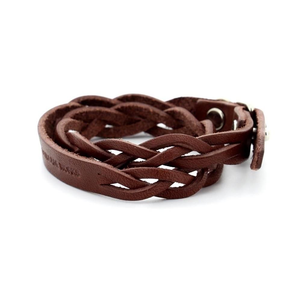 マジック編みのレザーブラスレット。全長が約34cmあり、2重巻でご使用頂けます。