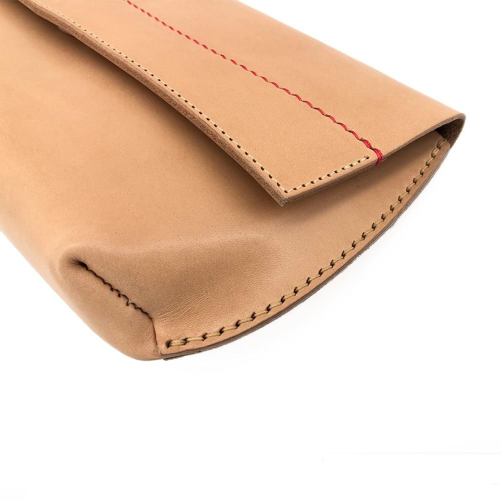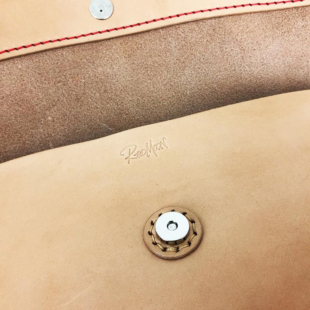 レッドムーンならではのワンピース設計のミニクラッチバッグです。スッキリとしたデザインで、スタイリッシュな見た目ですが、太糸を使用し手縫いにより仕上げられた贅沢なクラッチバッグです。ロングウォレットやスマートフォンも収納可能で、スマートでモダンな印象を与えてくれるアイテムです。