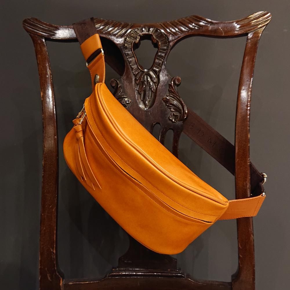 レッドムーンの2018年の新商品です。小さいサイズのボディバッグですが、ロングウォレットやスマートフォンなどの小物を収納するには十分な大きさです。