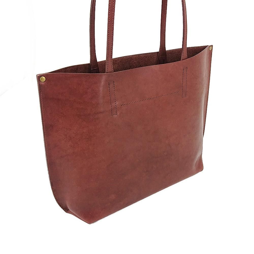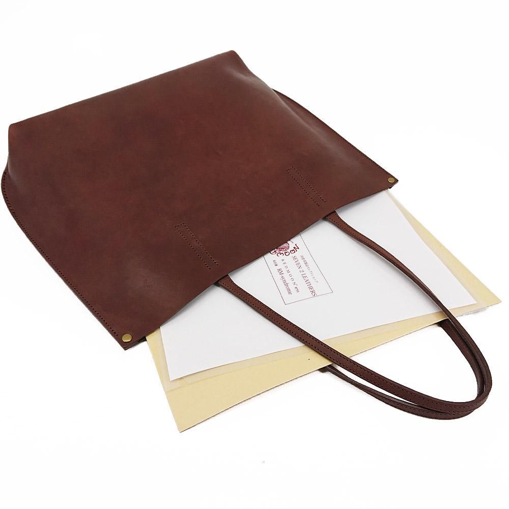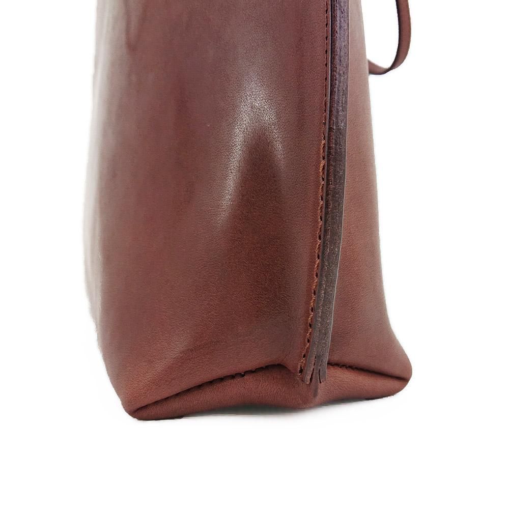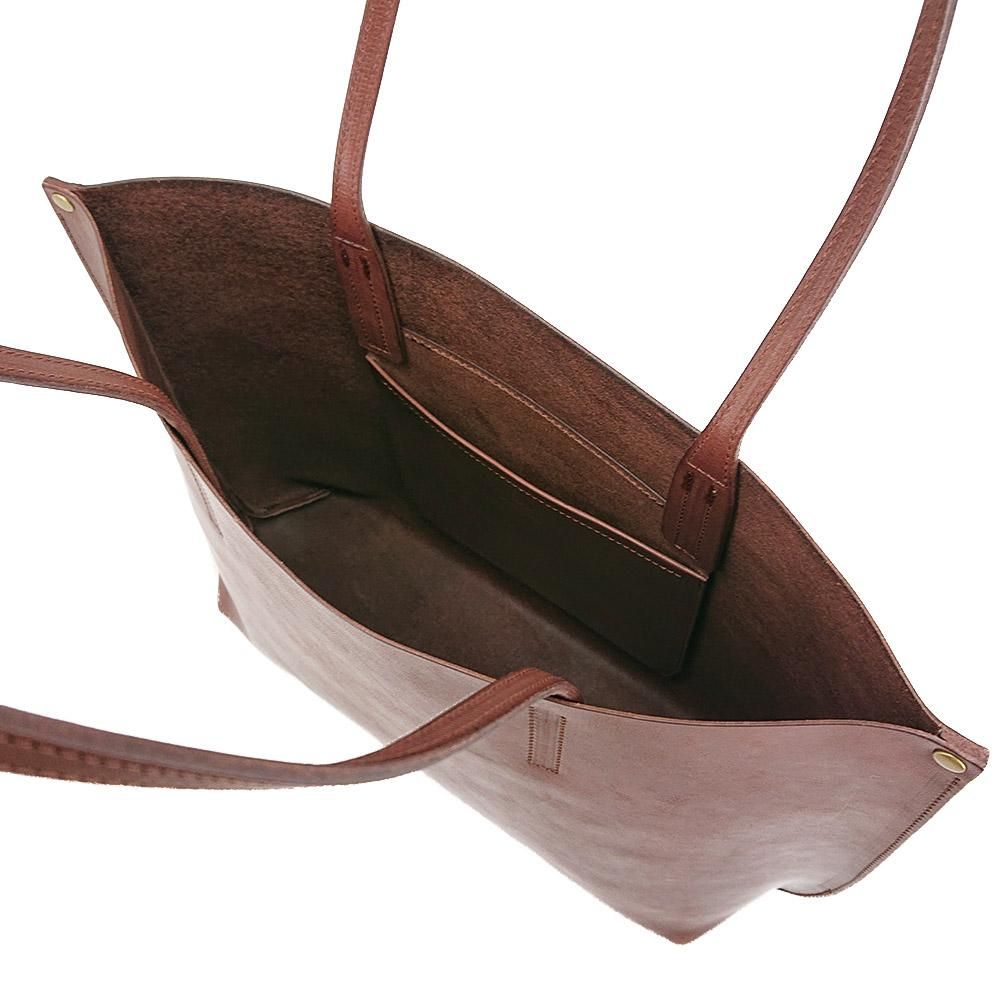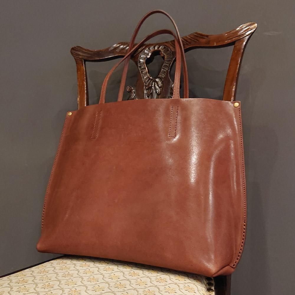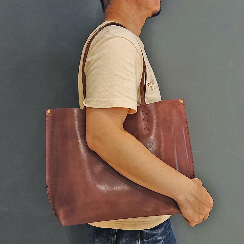 一枚仕立てのシンプルでスタイリッシュなワンピーストートバッグ。持ち手も530mmと長めに設計され、肩掛けにも適したデザインになっています。