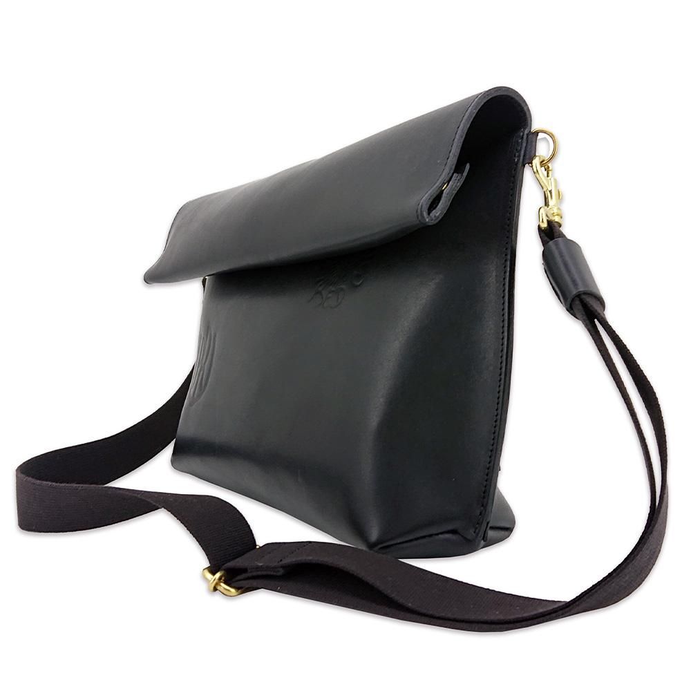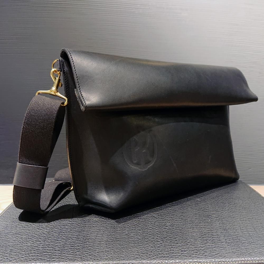 贅沢にワンピースの革から仕立てた、ロールトップタイプのショルダーバッグです。