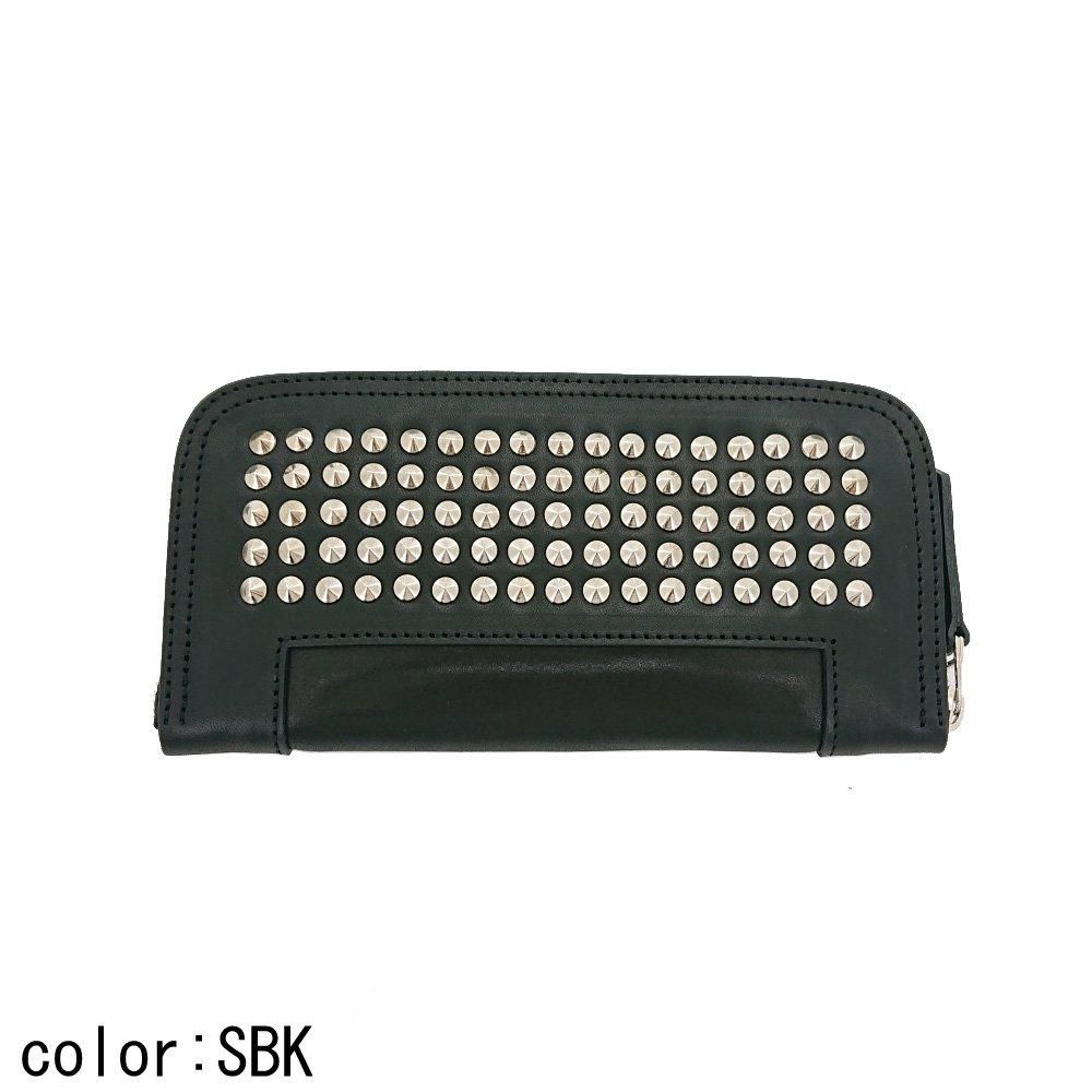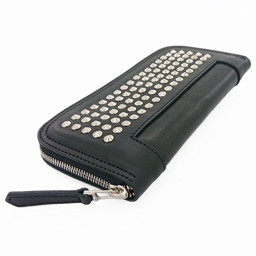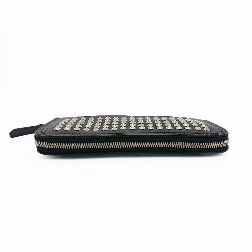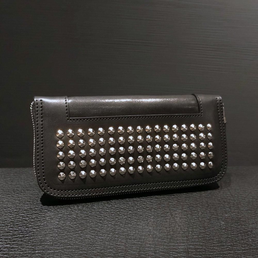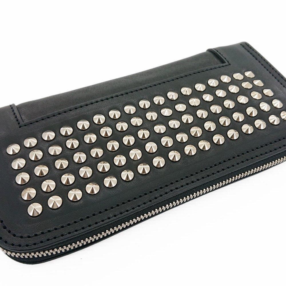 円錐スタッズを装飾したラウンドファスナーロングウォレット