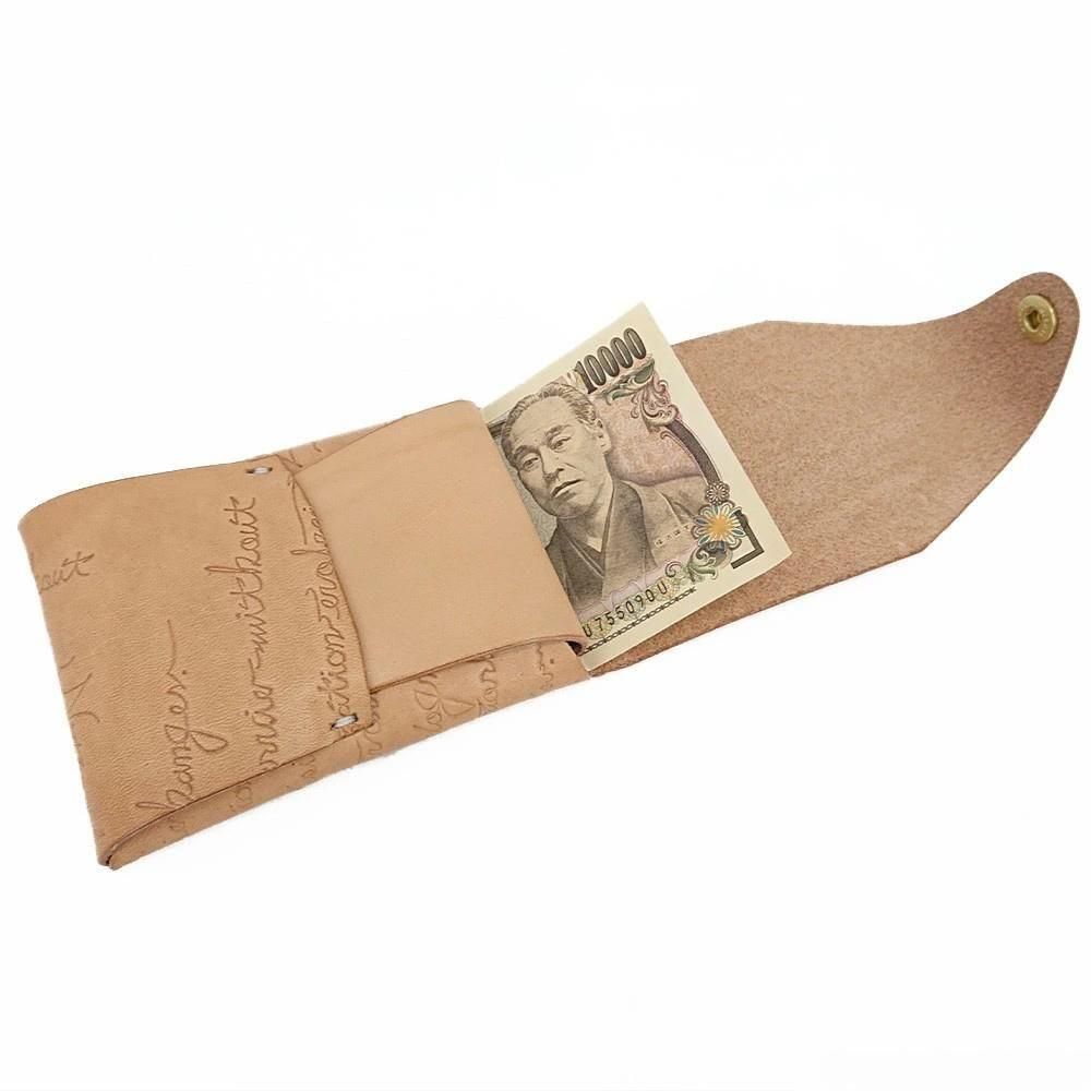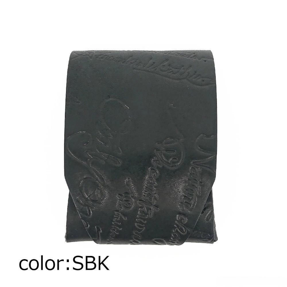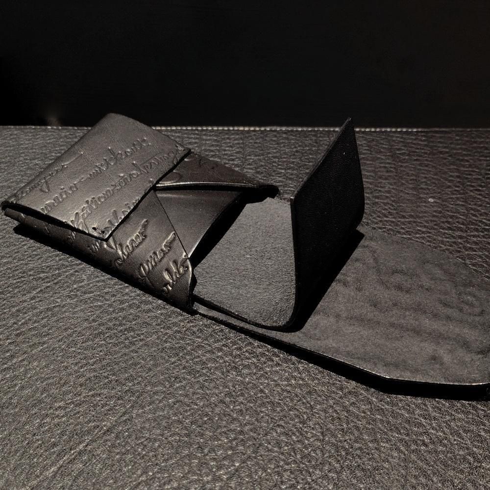カリグラフィがエンボスされた大人の雰囲気溢れるスマートウォレットです。